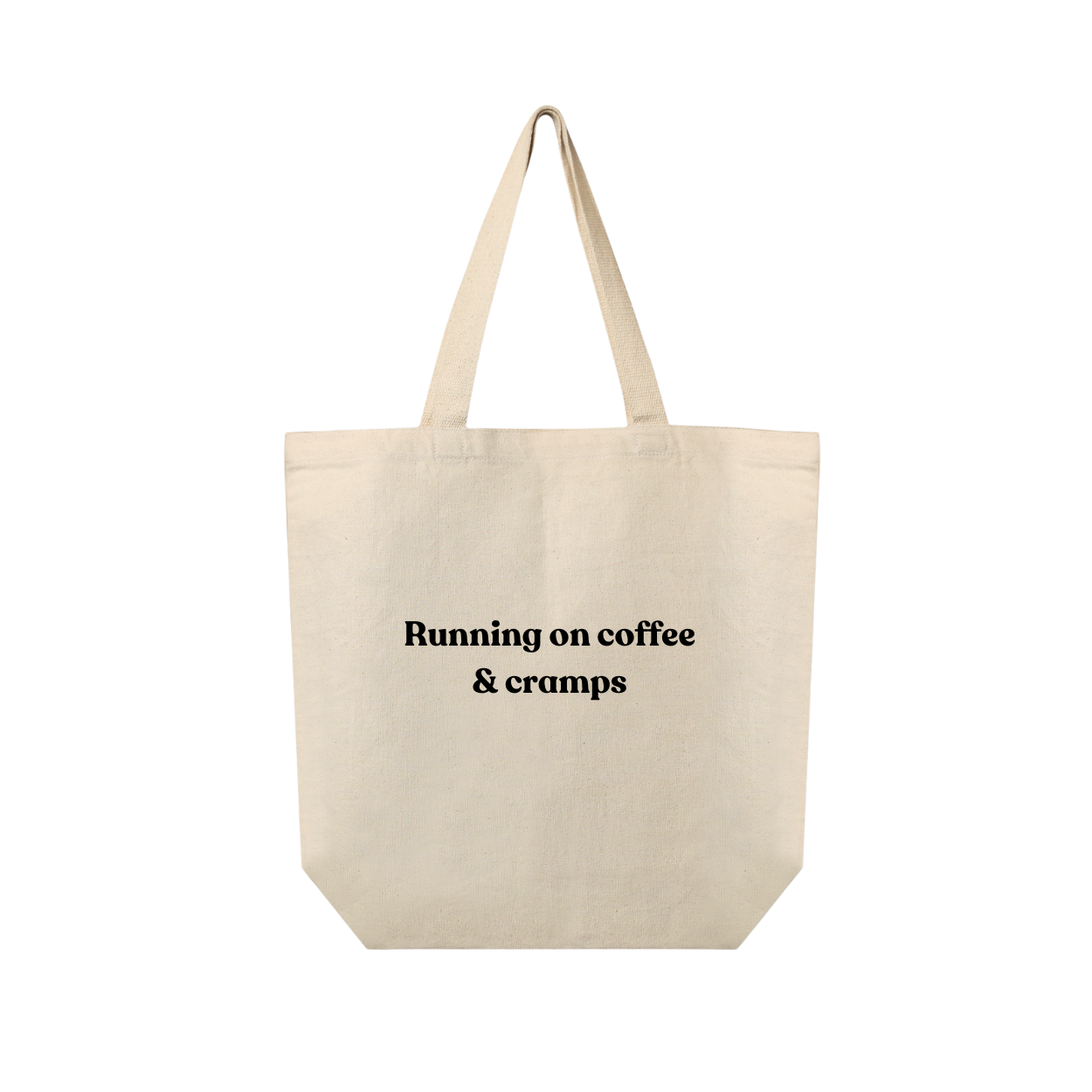 Our 'Running on Coffee Tote Bag' – the perfect blend of humor and practicality for those who juggle busy days with a smile (and a little caffeine).
